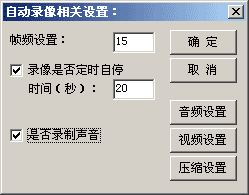 B、我想录像20秒后自动停止,怎么办?答:点自动录像,在自停时间前面打上沟,在后面输入20即可。