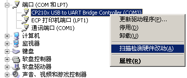 14、这里再去设备管理器去看,就会变成COM3了。如果没有变,怎么办?点鼠标右键,再点扫描检测硬件改动!!!!!!!
